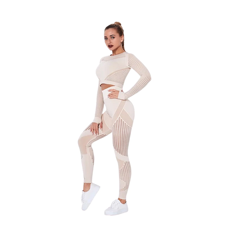 This yoga wear features a unique textured pattern that makes this suit fit any body curve while stylish. This yoga wear will keep you in better shape during your workouts while also looking energized!